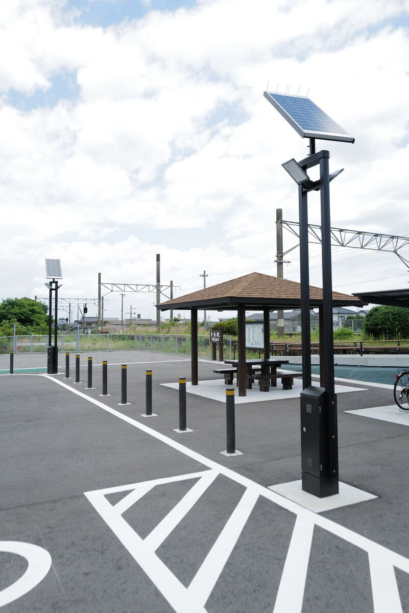 この多良駅西口駐車場に、ソーラー照明灯『ソライト』を納入しました。