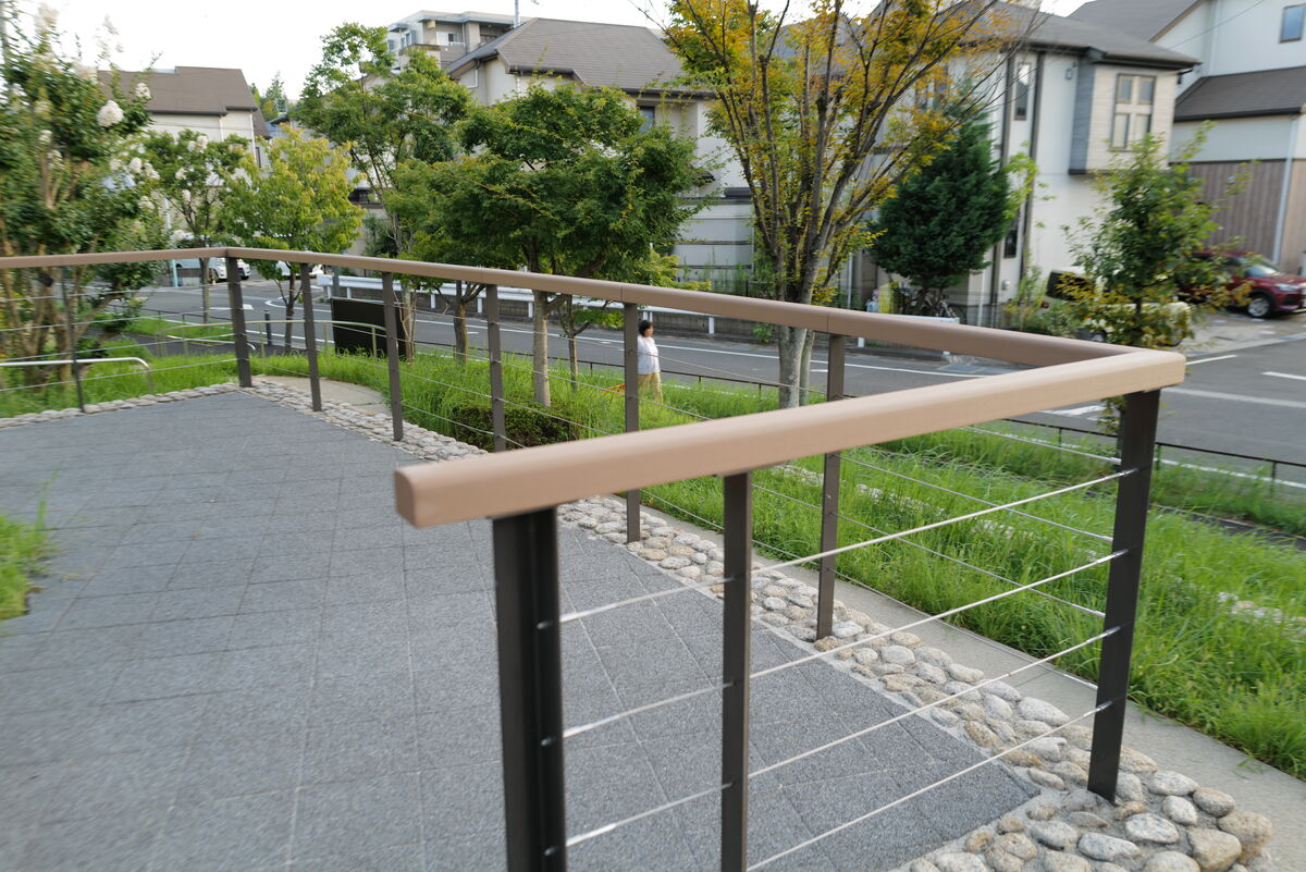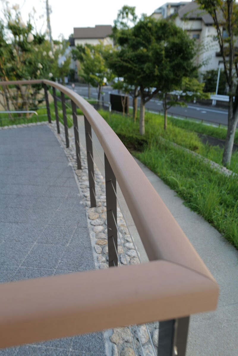 笠木に採用した再生木材セコロウッドは耐候性と耐久性に優れた素材で、経年変化が少なく長期にわたって美しい外観を維持できる特長があります。