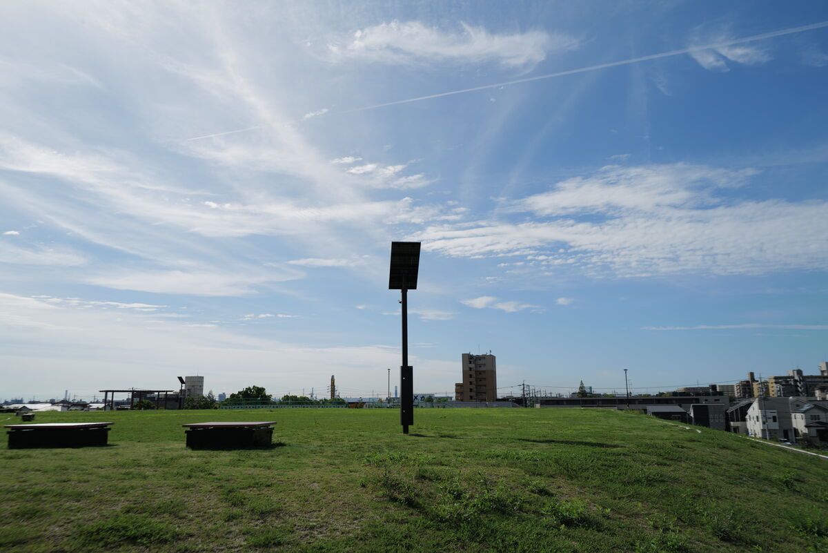 名古屋市港区船頭場四丁目にある船頭場公園は、東日本大震災の教訓を踏まえて整備された津波対策の要でもあり、海抜約7mまで盛土した高台広場「命山」は最大約3,400人が一時的に避難できるスペースとして計画されました。