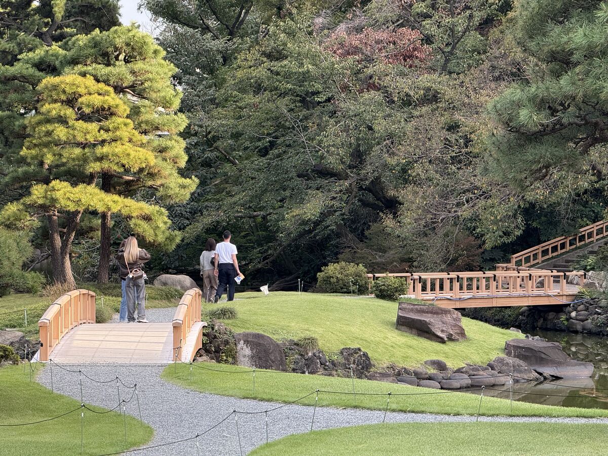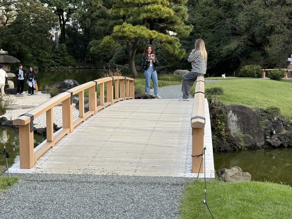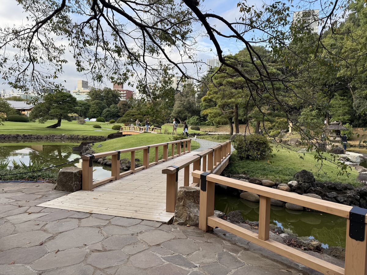 また、池を渡る人道橋には天然木材を使用し、日本庭園の趣に調和する温かみのある仕上がりとなっています。