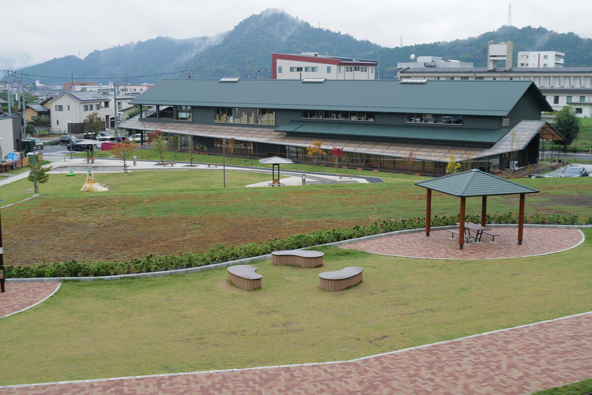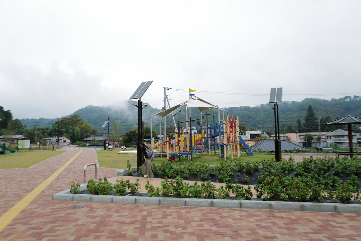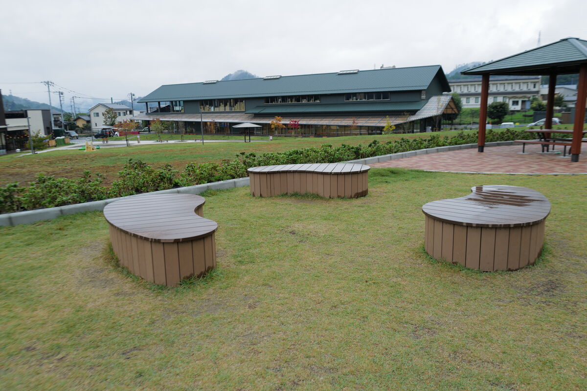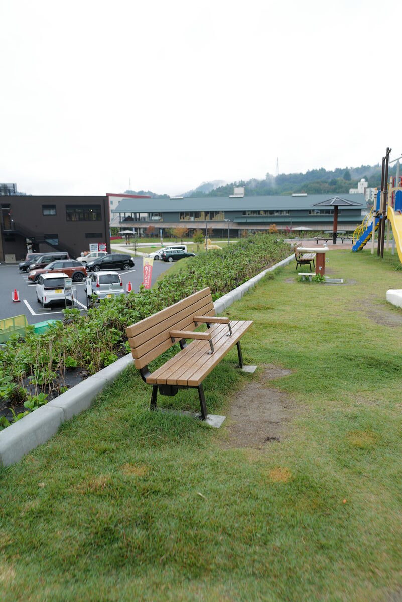 こちらの公園へ、ソーラー照明灯『ソライト』、箱型ベンチ『ハコベン縁台丸』と『ハコベン縁台ソラマメ』、再生木材製ベンチ『バンコン コンフォルト』、転落防止柵、横断防止柵を納入しました。