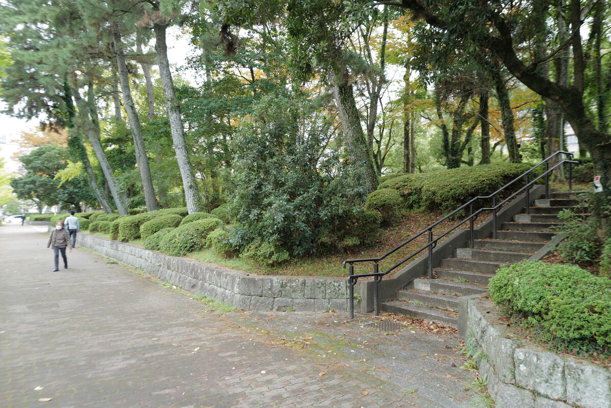 三重県津市の中心部に位置する「お城公園」は、津市役所に隣接し、石垣や豊かな樹木に囲まれた緑の多い公園です。