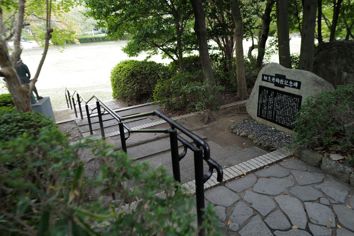 この公園の階段部へ、アルミ製ユニバーサル手すり「アルミ憩木」を納入しました。