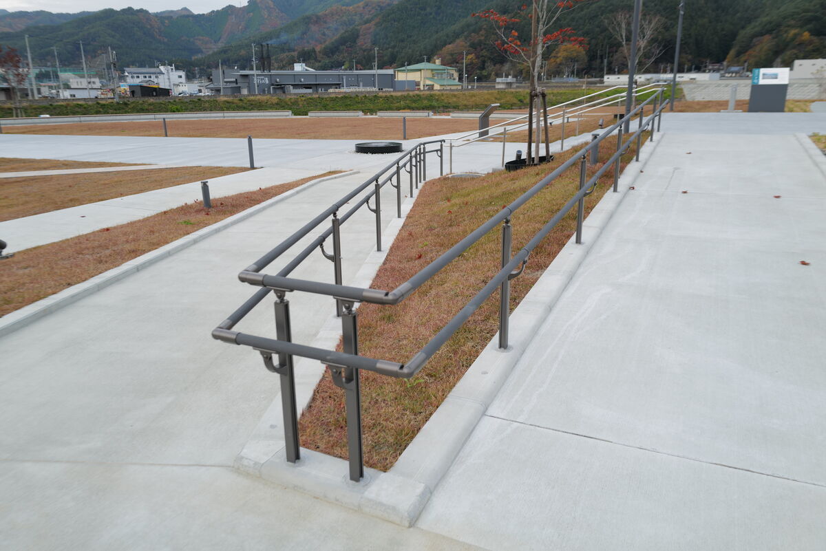手すりは上下2段タイプで、大人から子供、高齢者まで幅広い利用者が無理なく使用できるユニバーサルデザインを採用しており、訪れる方々の安全な移動をサポートします。