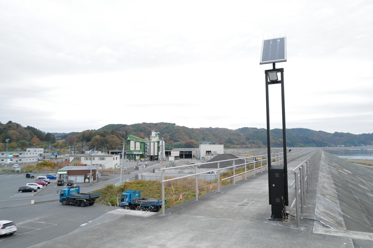 岩手県宮古市に整備された防潮堤に、ソーラー照明灯『分離ソライト』を納入しました。