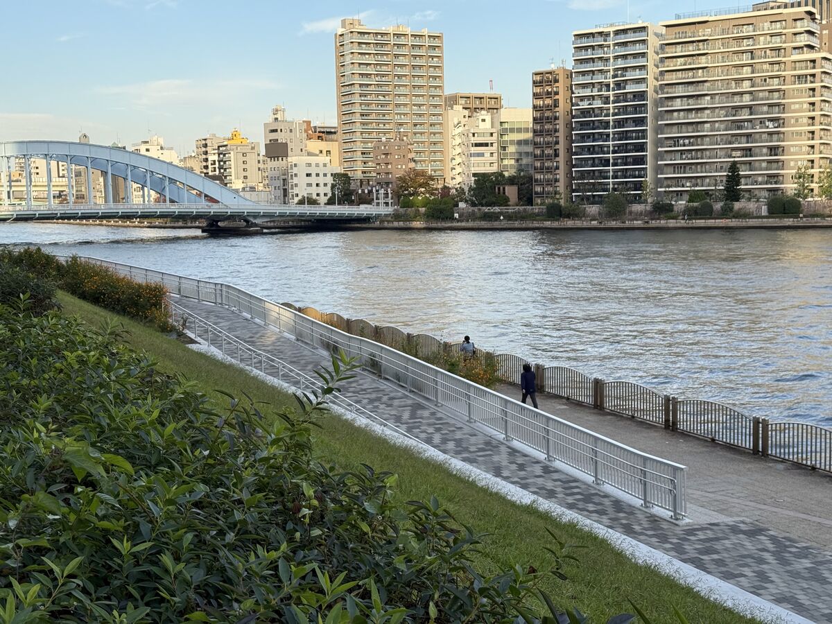 東京都中央区新川二丁目の隅田川(新川地区)防災船着場では、河川テラスへつながるスロープの整備に合わせて、転落防止とバリアフリーの両面から安全性を高めるため、アルミ高欄「レーリング」とアルミ手すり「アルミ憩木」を納入しました。