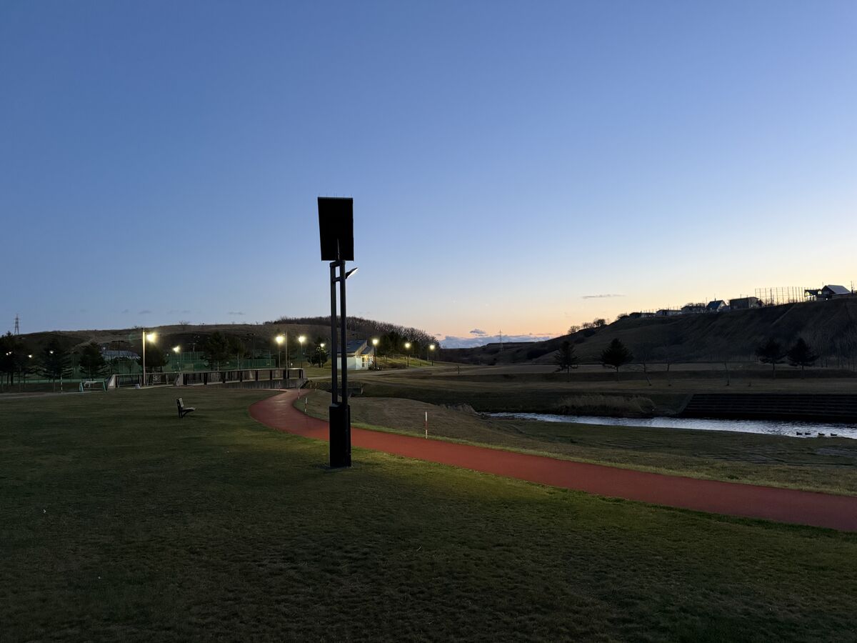 風が強く日照時間が限られがちな道東エリアでも、日常のスポーツ利用と防災の両面で活躍する公園照明として活躍しています。