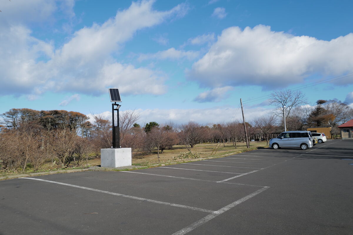 公園内には広い駐車場やイベントにも使える大きな広場があり、夜間や災害時にも安全に利用できるよう独立電源式のソーラー照明が採用されています。