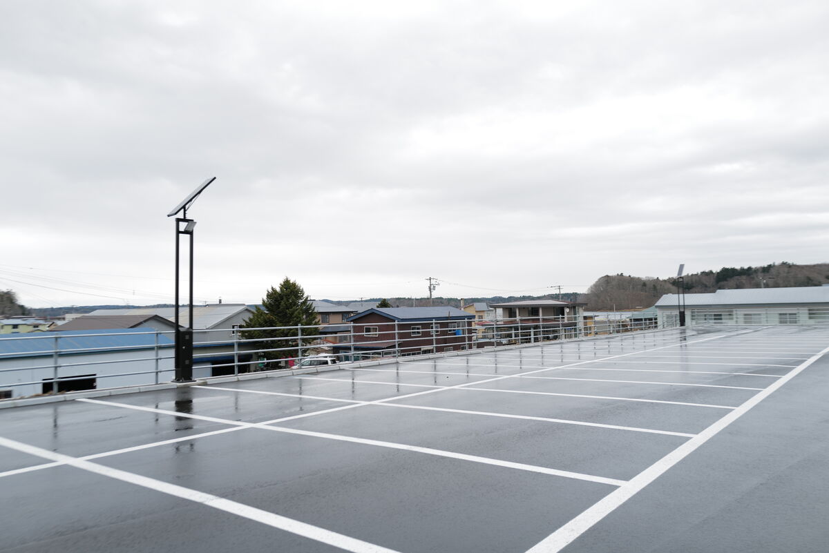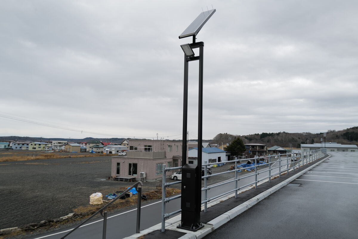 また、高台の駐車場内と、登り口となる麓側の出入口にはソーラー照明灯「ソライト」を配置し、商用電源に頼らず避難路と駐車場を照らすことで、停電時でも車と歩行者の動線が一目でわかる避難環境となりました。