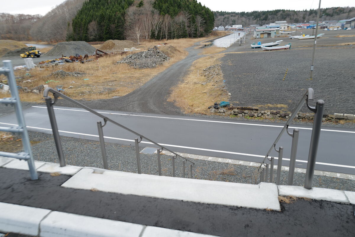 丸山散布(ちりっぷ)地区では、太平洋沿いの集落を守るため、新たに津波避難施設として人工高台が整備され、約80台分の車避難スペースを備えた指定緊急避難場所となっています。