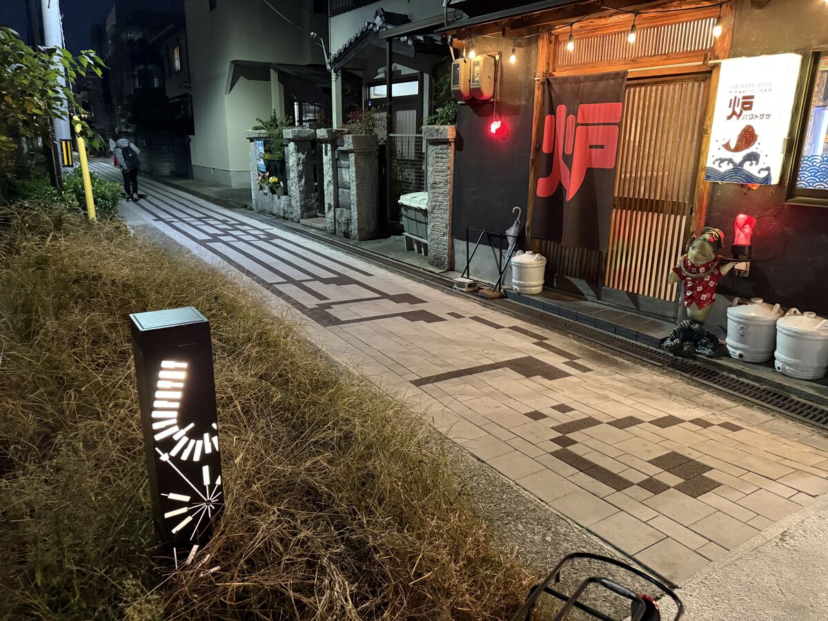 こちらの庄内西町の街路沿いへ、商用電源仕様のフットライト『ソラーポ』を納入しました。