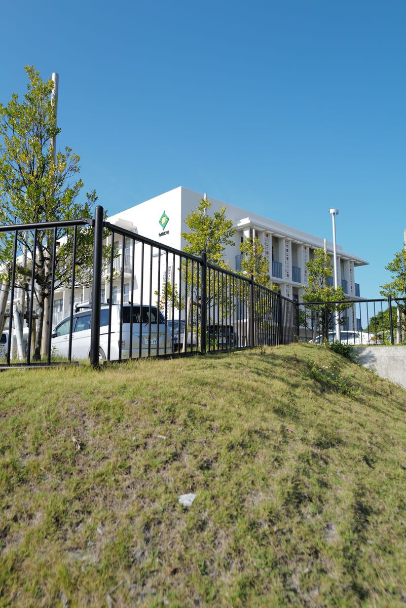 沖縄県国頭郡の今帰仁村新庁舎に、転落防止柵『ビスタ EVE』を納入しました。
