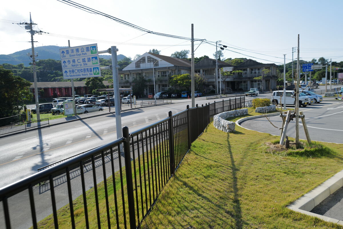 今帰仁村は沖縄本島北部に位置し、庁舎周辺も強い日差しと開けた空が印象的な地域です。