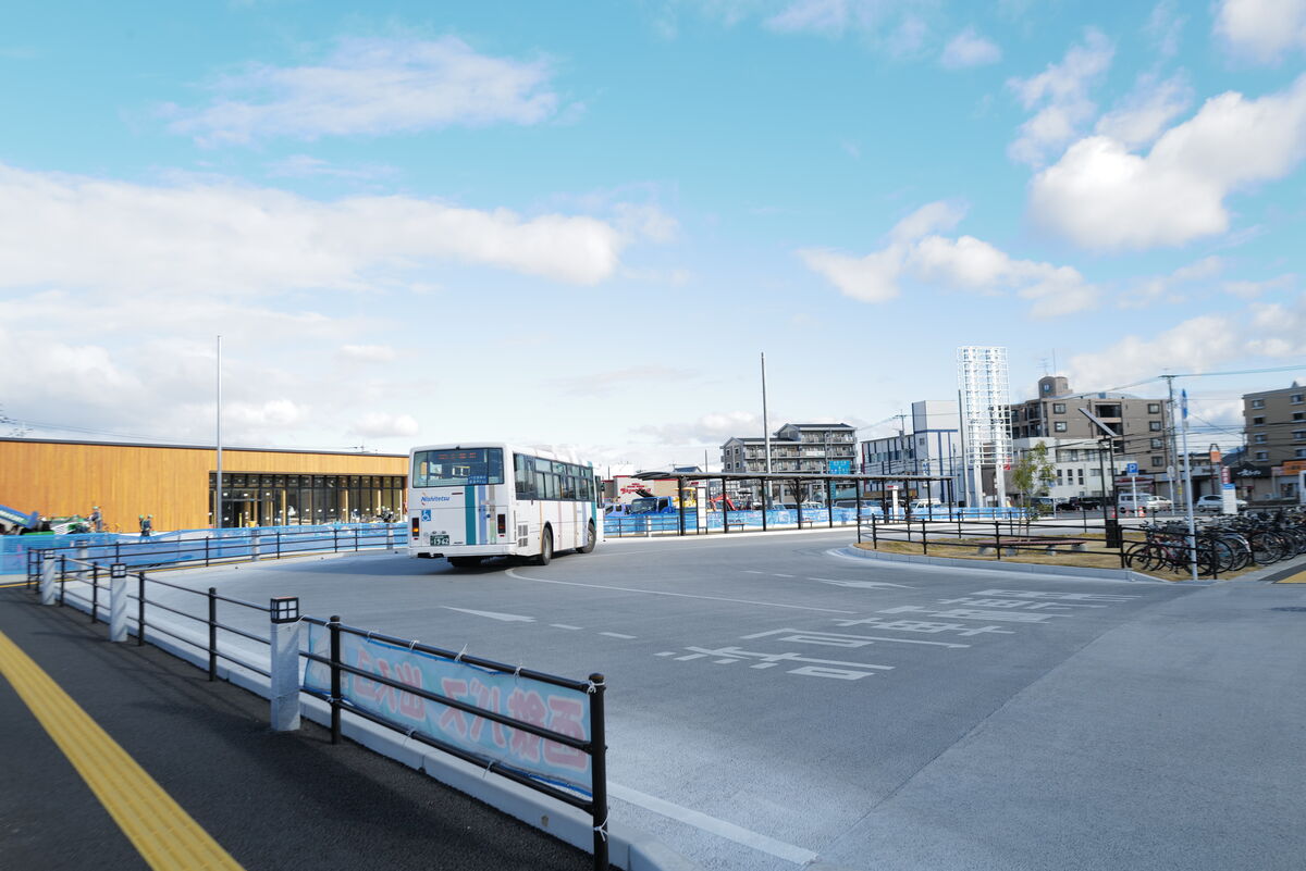 日中はバスロータリーの景観に溶け込み、日没後には柔らかな光が灯ることで訪れる人々を温かく迎え入れる空間を創出しています。