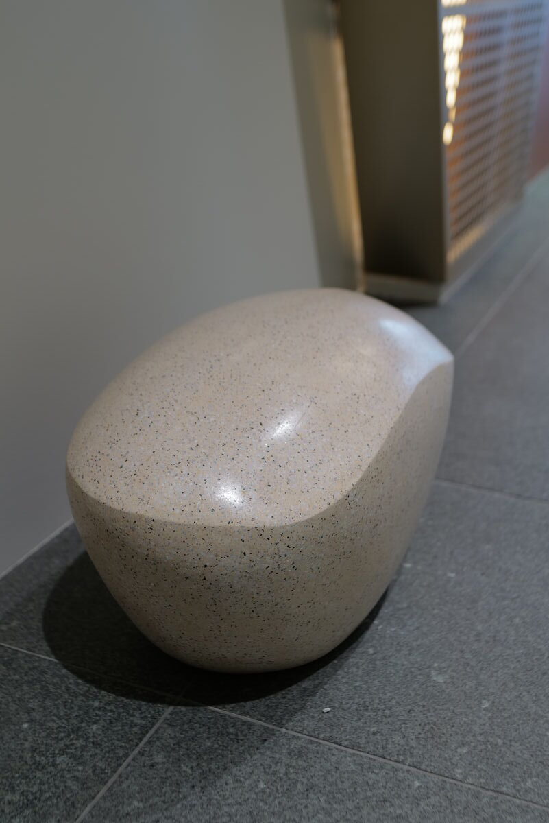 愛知県名古屋市の某ビルのエントランスロビーへ、人造石研ぎ出し仕上げによるスカルプチャースツール『MFS MOUSE』を納入しました。