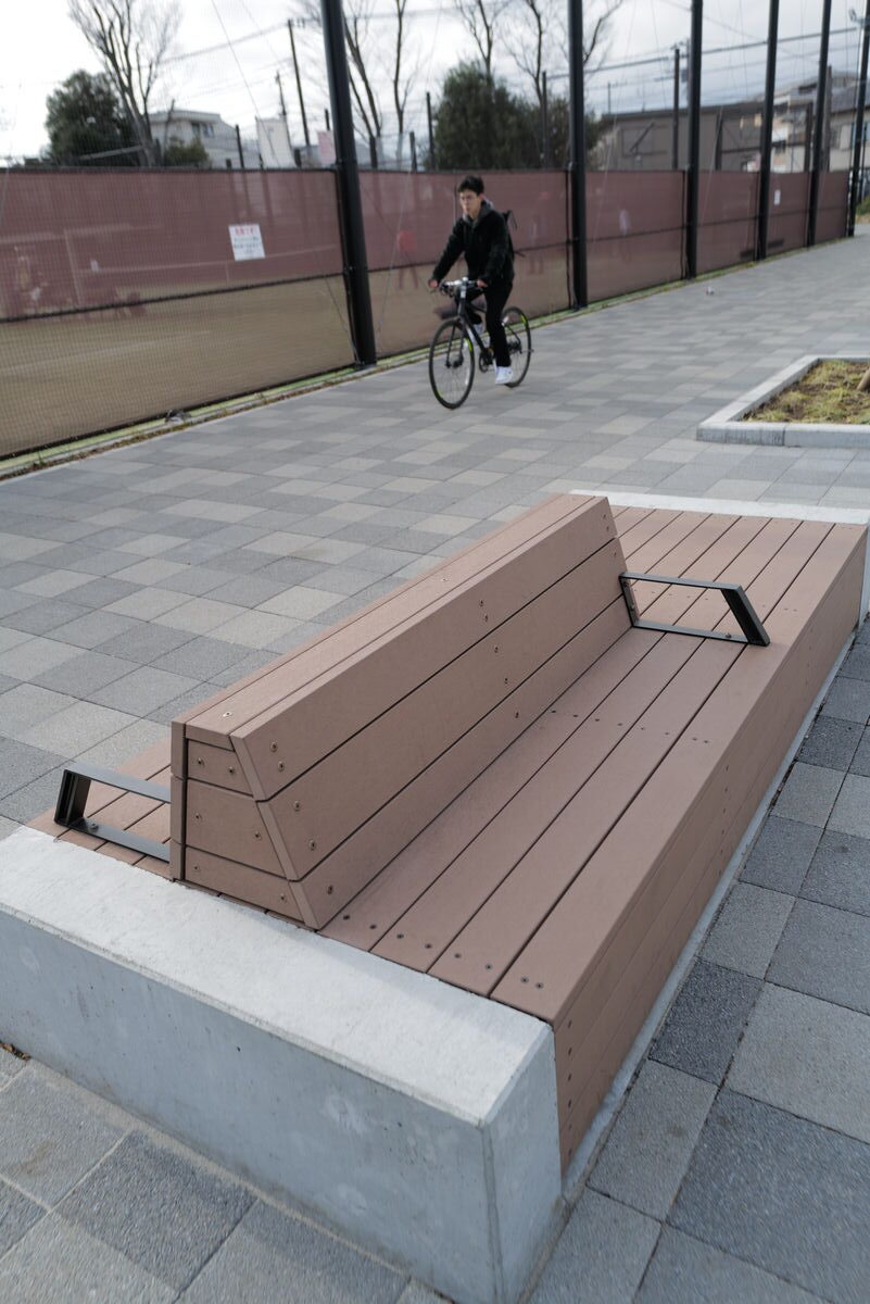 また、背付きロングベンチや肘掛け付きベンチなど、複数のタイプを納入し、利用者が思い思いの場所で寛げる空間を創出しています。