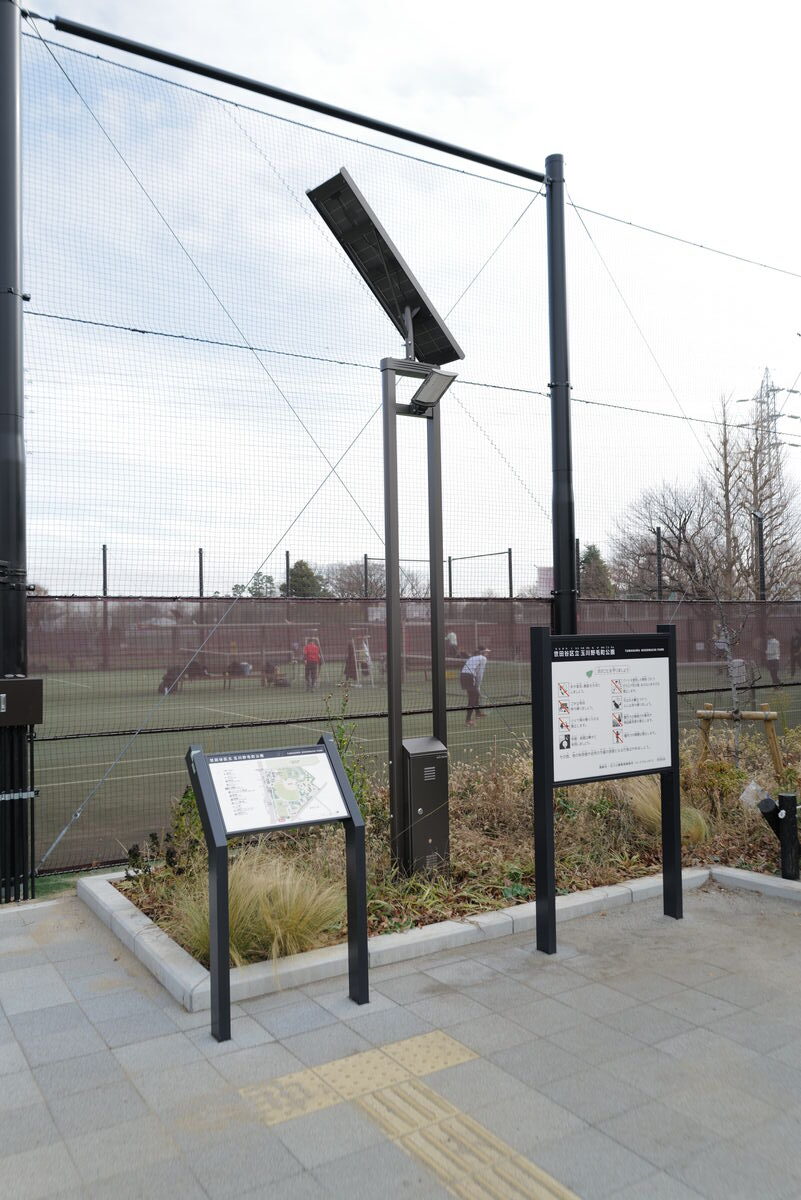 また、夜間の安全確保のため、ソーラー照明灯「ソライトNX」を納入しました。この製品はリチウムイオンバッテリーと鉛蓄電池の両方を搭載したハイブリッド型で、風憩セコロが独自開発した自動切り替えシステムにより、日常的には充放電効率に優れたリチウムイオンバッテリーを使用し、無日照期間には丈夫な鉛蓄電池に切り替わります。