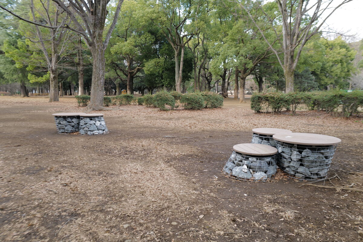 東京都渋谷区に位置する代々木公園へ、ガビオン構造を活用した円形ベンチ『ガビオンラウンドベンチ(GRB-SW-900)』『ガビオンラウンドベンチ(GRB-SW-700L)』『ガビオンラウンドベンチ(GRB-SW-700)』を納入しました。