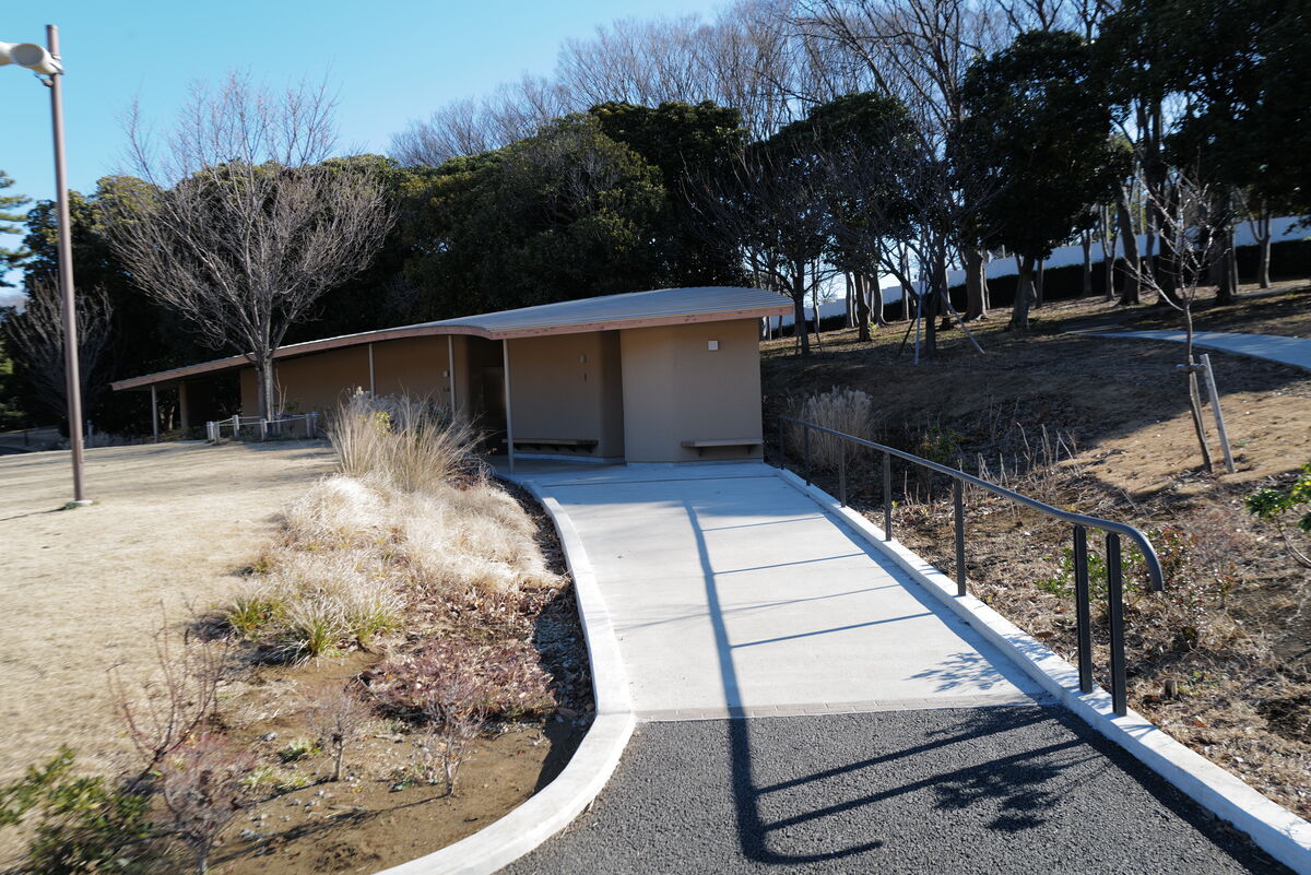 春には桜が咲き誇り、四季を通じて散策やピクニックを楽しむ人々で賑わうこの公園に、2025年グッドデザイン賞を受賞した公園トイレ「丘の小道」が誕生しました。