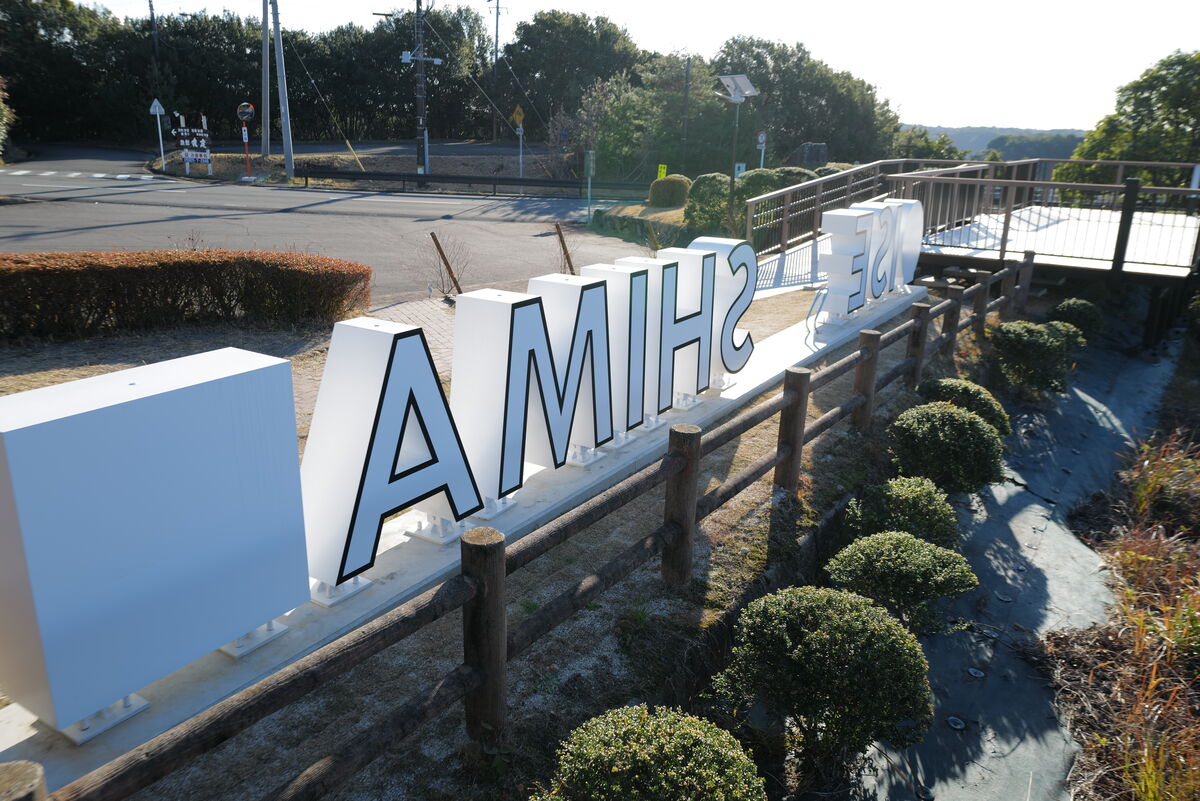 大型文字サインは「ISE SHIMA」と立体文字で構成されたステンレス製の特注品です。