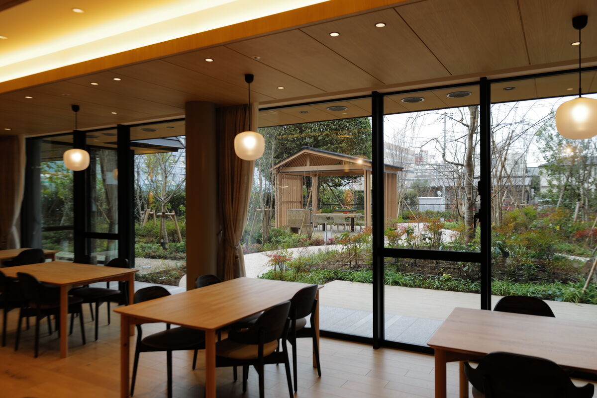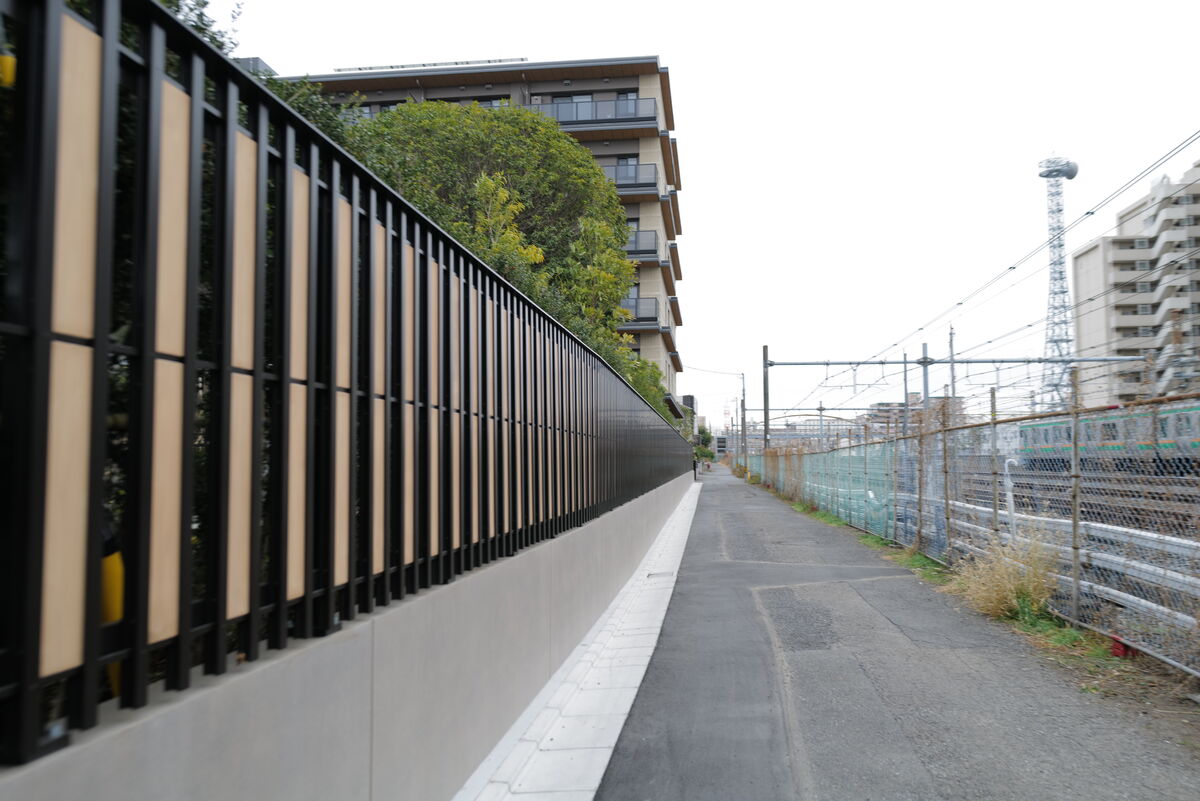 施設の境界を明確にしながらも、完全に閉鎖的にならない適度な透け感を持ち、周囲の住宅街とのプライバシー保護の役割も果たします。