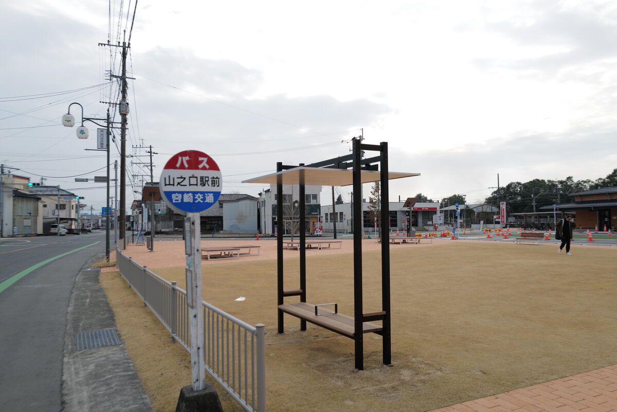 宮崎県都城市の山之口駅前ロータリーへ、ベンチ付きシェルター『CPR-302』を納入しました。