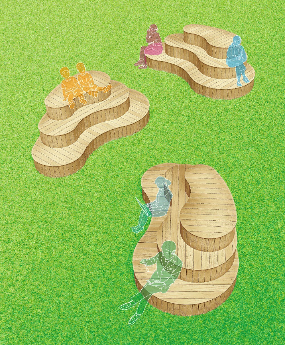 それを積み上げた形の「DANDAN -段-」バージョンが登場。既存のハコベン縁台ソラマメと比べて存在感があり、より街のシンボル的存在となっていきます。