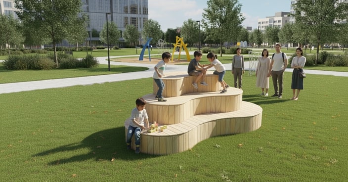 発売以来、全国の公園や商業施設で採用される人気のベンチ「ハコベン縁台ソラマメ」。